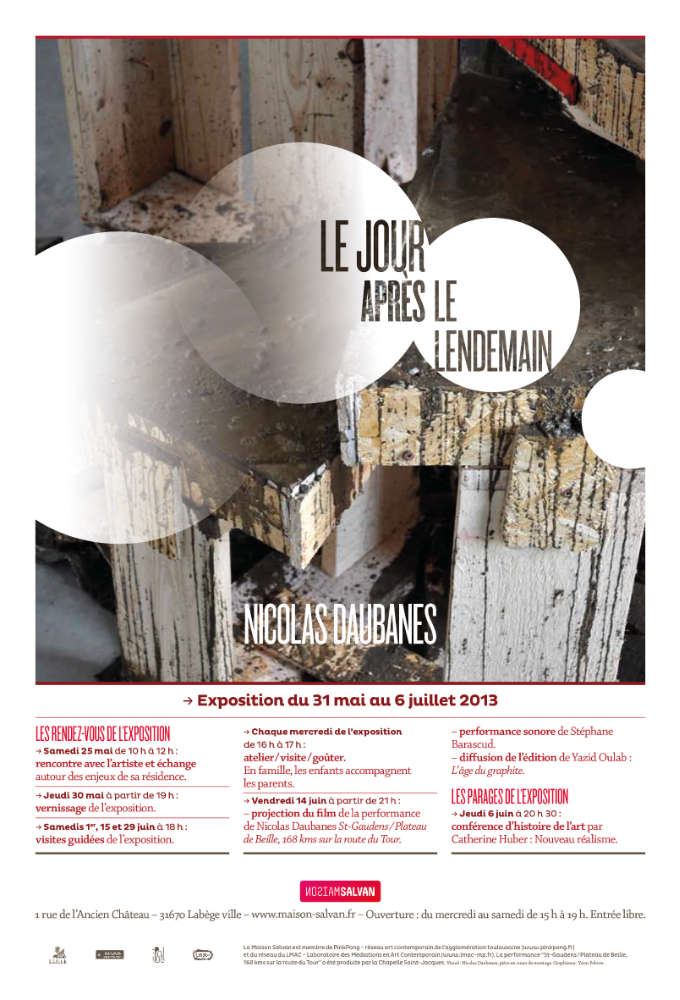 1. Nicolas Daubanes, carton d’invitation “Le jour après le lendemain”. 15×21 cm, 2 pages, impression offset.